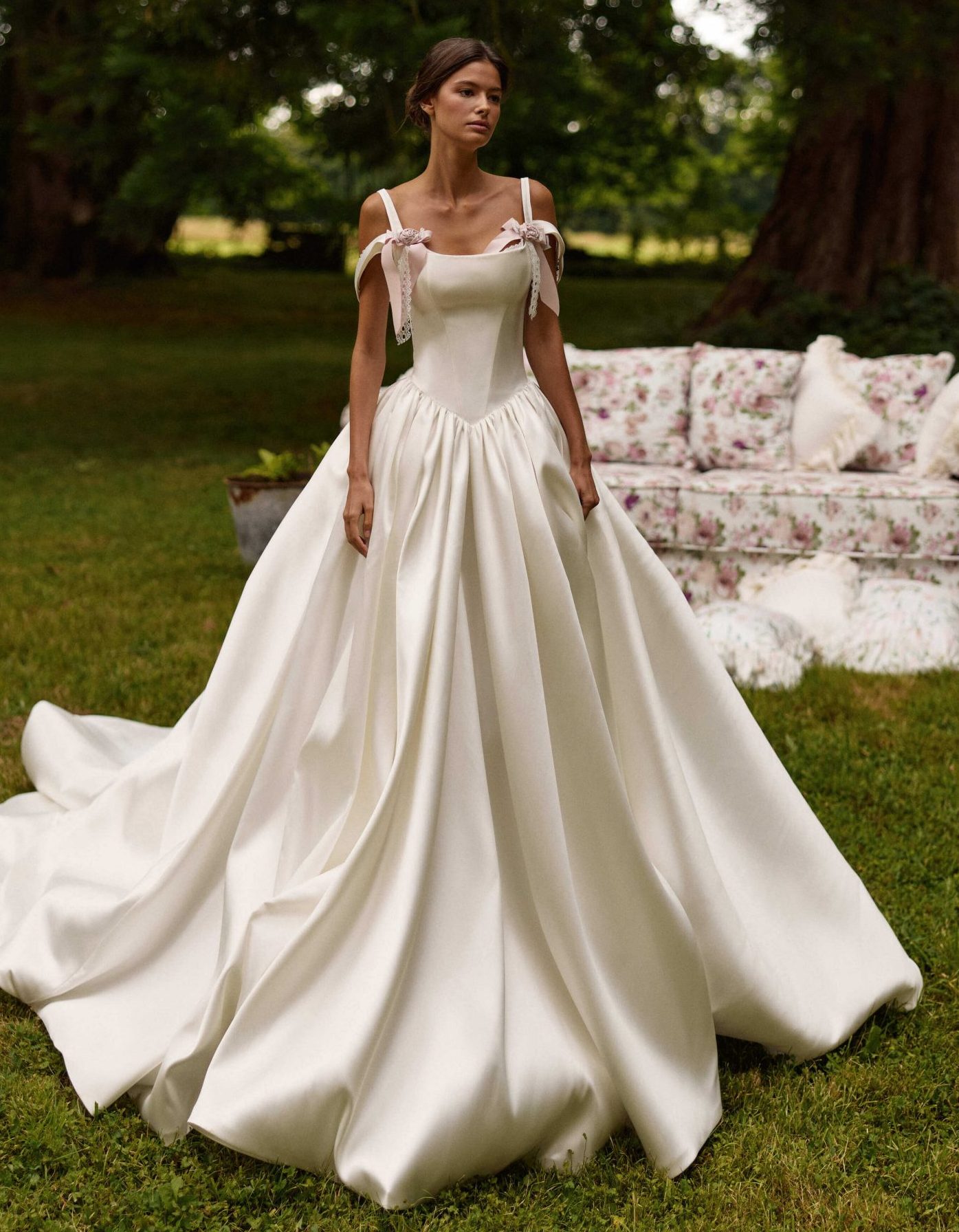 Cena izposoje ogledane obleke je v tem izbranem cenovnem razredu. Natančno ceno izveste v salonu. V ceno izposoje obleke je všteto: svetovanje pri izbiranju, prikrojitev obleke, čiščenje, podkrilo in pripadajoč šal/ogrinjalo.