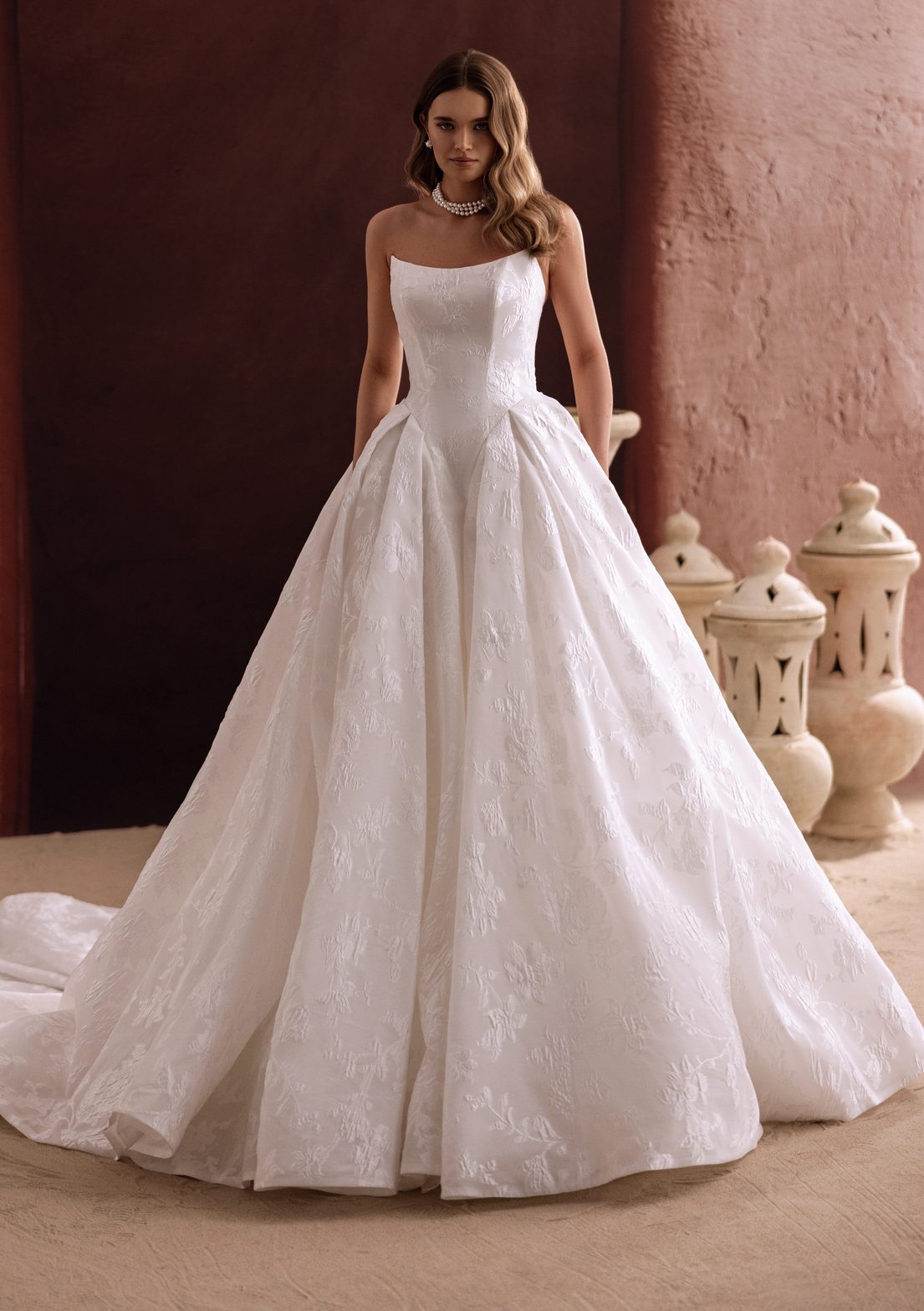 Cena izposoje ogledane obleke je v tem izbranem cenovnem razredu. Natančno ceno izveste v salonu. V ceno izposoje obleke je všteto: svetovanje pri izbiranju, prikrojitev obleke, čiščenje, podkrilo in pripadajoč šal/ogrinjalo.