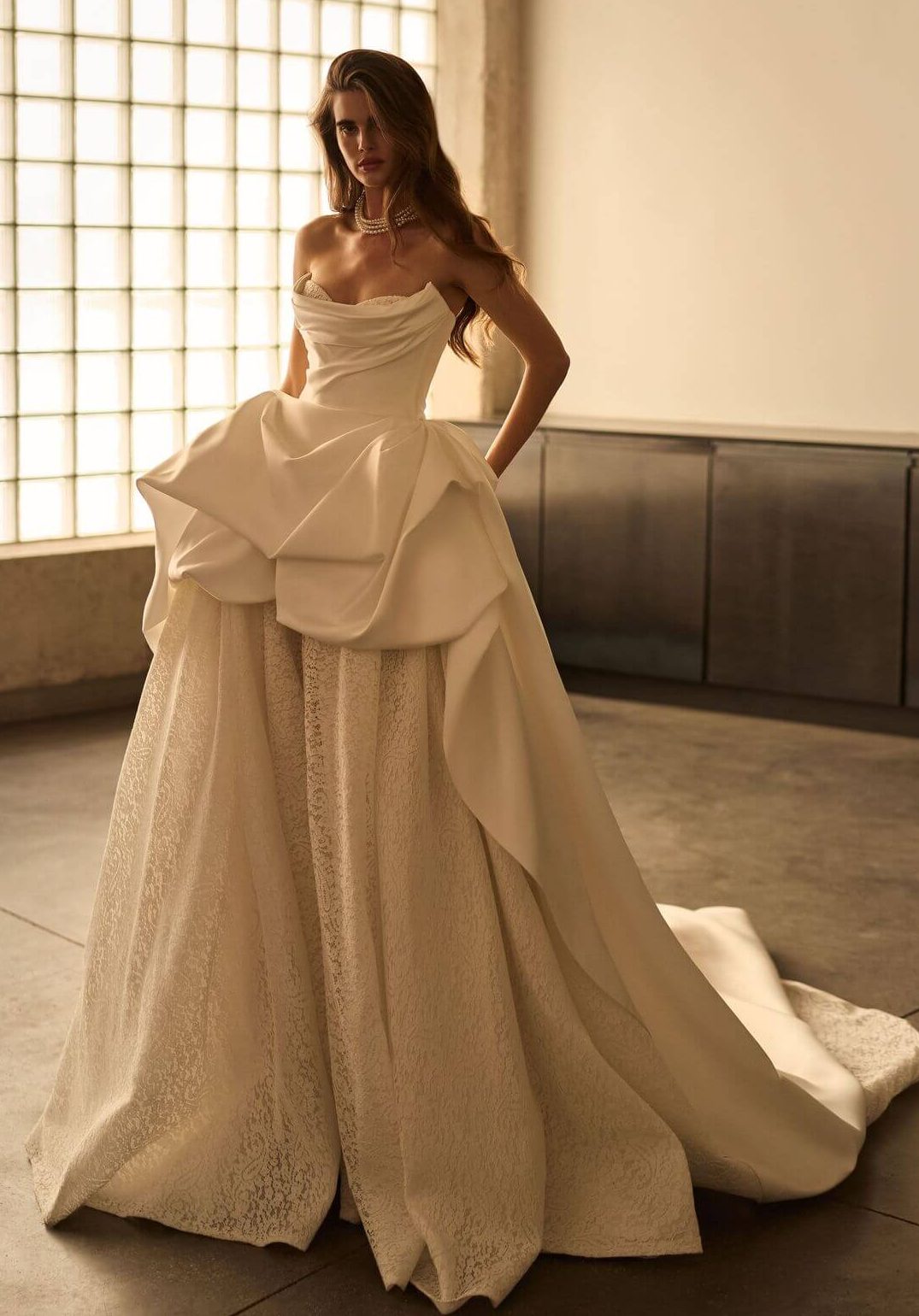 Cena izposoje ogledane obleke je v tem izbranem cenovnem razredu. Natančno ceno izveste v salonu. V ceno izposoje obleke je všteto: svetovanje pri izbiranju, prikrojitev obleke, čiščenje, podkrilo in pripadajoč šal/ogrinjalo.