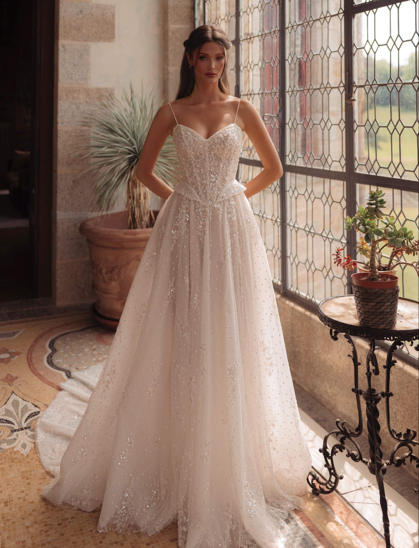Cena izposoje ogledane obleke je v tem izbranem cenovnem razredu. Natančno ceno izveste v salonu. V ceno izposoje obleke je všteto: svetovanje pri izbiranju, prikrojitev obleke, čiščenje, podkrilo in pripadajoč šal/ogrinjalo.